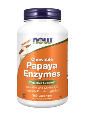 Digestive enzymes are essential to the body's absorption and full use of food. The capacity of the body to make enzymes diminishes with age, and therefore the efficiency of digestion declines. NOW�Papaya Enzyme Lozenges have a refreshing taste and support digestion when taken after meals. Bromelain has been extracted from pineapples to add further digestive help for protein and fats. Both papya and pineapple also provide a source of naturally-occuring antioxidants that can be protective in the digestive tract and body. In addition, Protease, Lipase and Cellulase have been included for a full spectrum of enzymatic activity to help digest protein, starch, fat and fibre.�This lozenge may also be useful as a breath freshener.